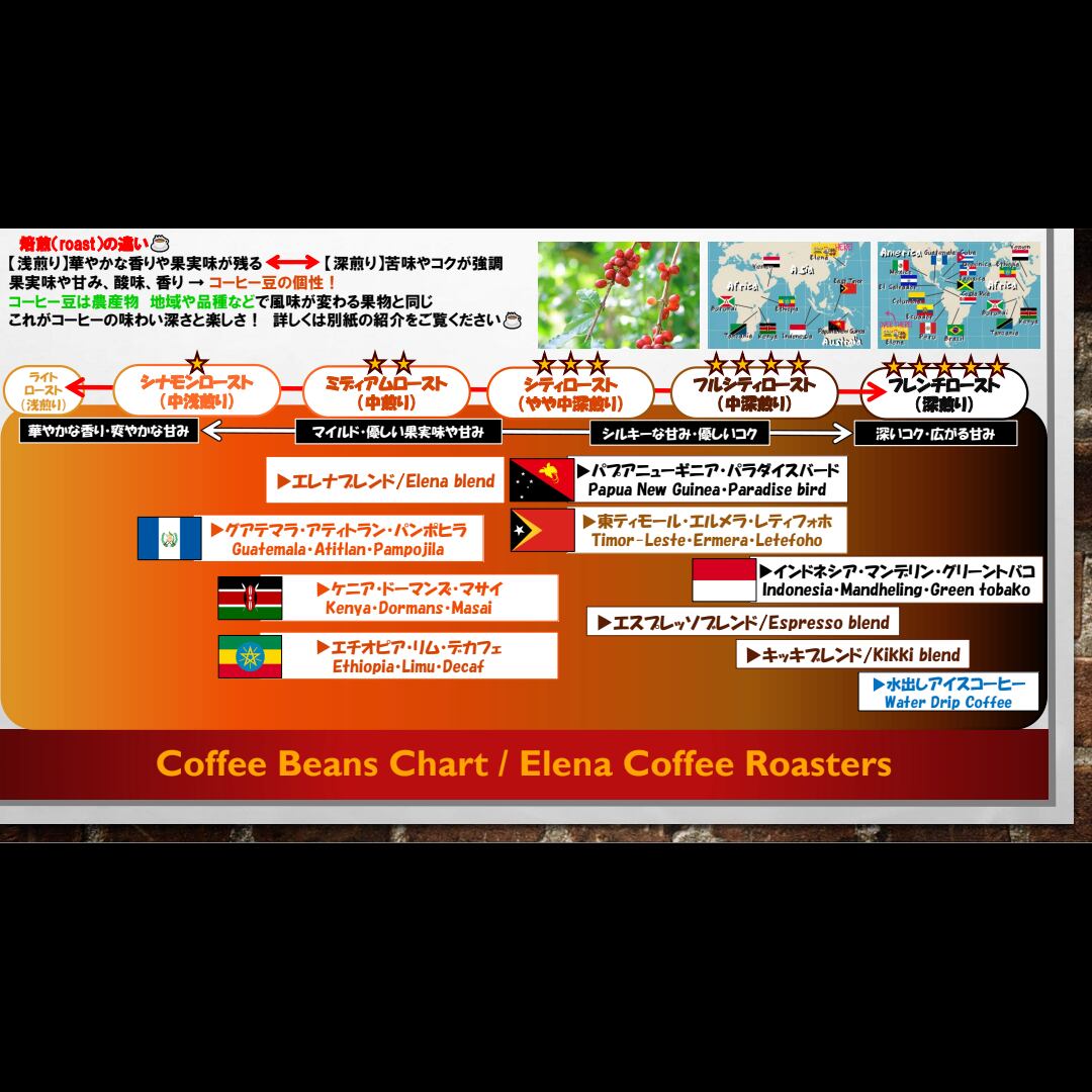 Elena BlendとKikki Blendのブレンドコーヒー2種類を100g×1袋ずつをお届けいたします。